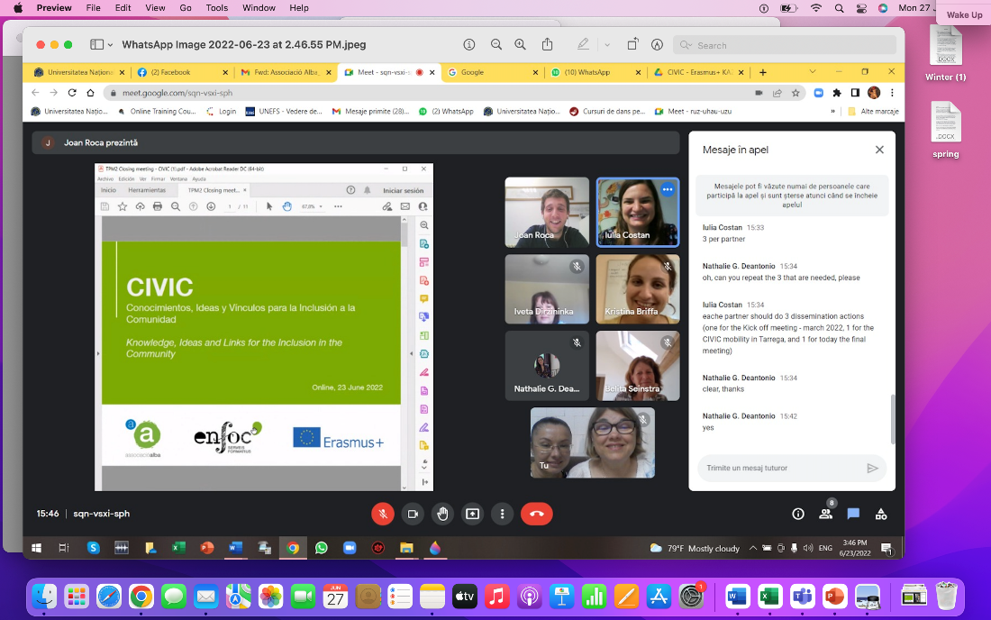 During this meeting held on 23 June, members from all partner organisations took part to supply feedback and suggestions about the activities carried out. Project outcomes and final project actions were also discussed and agreed upon as the project ends on 30 June 2022. Anyela Gomez and Kristina Briffa, Team Leaders represented Inspire.